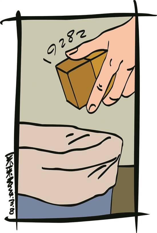 可阿强从口袋里只掏出5元钱,他这才想起钱昨天用来买了两包香烟。阿强只好拿着写好5注号码的字条沮丧地对店老板说:“今天钱没带够,照前面两注号码给我出票吧。”