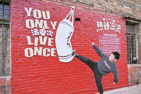 石龙镇设置电影《热辣滚烫》“打卡墙”,吸引市民游客拍照