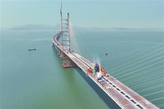 3月20日上午,经过近4小时精调和锁定,粤港澳大湾区重点工程、黄茅海跨海通道项目高栏港大桥顺利合龙。这是黄茅海跨海通道2座主桥中首个合龙的主桥,标志着项目上部结构施工取得重大突破。