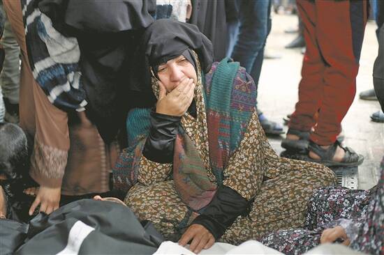 3月19日,在加沙地带南部城市拉法,巴勒斯坦人悼念死于以军轰炸的遇难者 新华社发