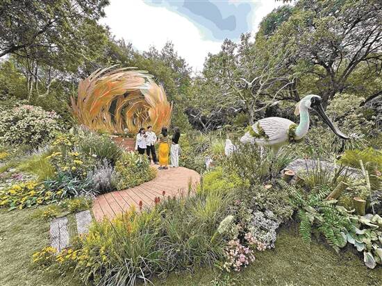 在企业花园,云集了来自南非、英国、乌拉圭、澳大利亚、中国等5个国家的著名设计师参与,展示了世界前沿设计理念和造园技艺。来自英国的设计师乔·汤普森,与普林斯顿大学形态研发实验室、贝加莫大学、帕加索大学的研发人员共同为本届花展打造了一座展示花园——《触碰自然》,这是在展示花园史上,首次利用增强现实(AR)技术,建造如此复杂的砖体结构建筑。