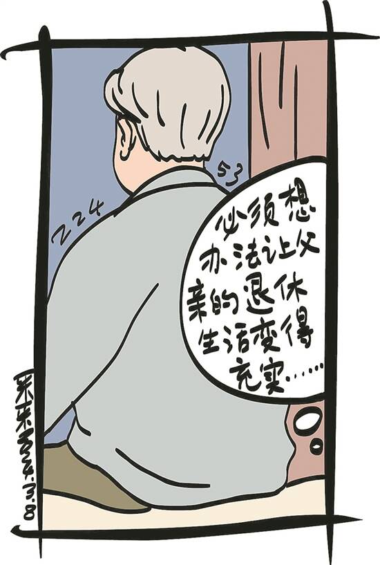 儿子小军注意到,退休半年以来,父亲的话明显变少了。父亲经常默默地站在窗前,注视着远方数小时一言不发。小军看着父亲落寞的身影,内心焦急万分。他深知,老人一怕生病,二怕空虚,必须想办法让父亲的退休生活变得充实起来,否则要不了几年时间,老人的身子就会垮掉。