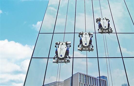 凌度机器人清洗玻璃幕墙 图/受访者提供