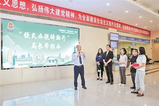 在“便民办税体验行之局长带你办”环节,开发区税务局税务人员正在向体验师们介绍办税服务厅的整体情况