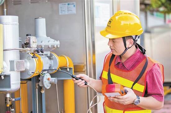 工作人员对燃气设施进行检测 通讯员成广聚供图
