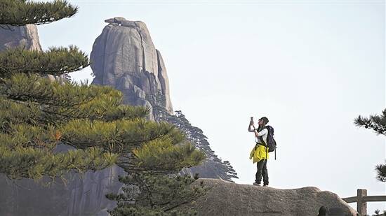 3月,春暖花开,游客在安徽黄山风景区观赏黄山松。安徽黄山市实施A级景区旅游免费开放措施,一季度非节假日每周三为开放日,全市范围内24处A级旅游景区当天预约免门票开放,吸引众多游客纷至沓来。
