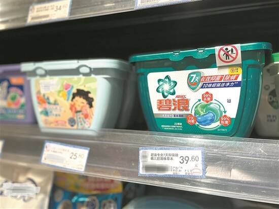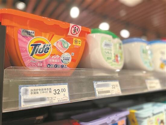 随后,记者走访广州部分商超,发现货架上摆放的主要是中文版本的汰渍等品牌的洗涤产品。店员告诉记者,一般超市都只会销售中国区的这类产品。