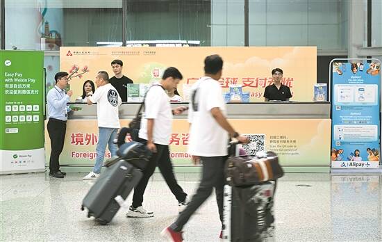 广州白云机场二号航站楼境外来宾支付服务咨询台 新华社发