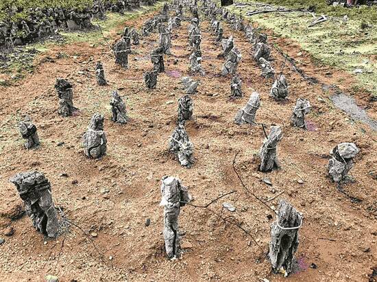 来到溪边树花木盆景产业园,记者看到,工人们在一边拢地,基地负责人林慧君挖好一条条沟后,工人就把一块块石头整齐地种下去,而这些石头上都被固定了一棵棵小树苗。林慧君向记者介绍,“种石头”的第一步就是要先把树苗附植在石头缝隙里。只见林慧君夫妻俩配合默契,一人把一棵幼小的树苗附植在石头上,将枝干盘曲在石头缝里,只留出根系,一人将树苗固定好,就可以拿去地里种植了。