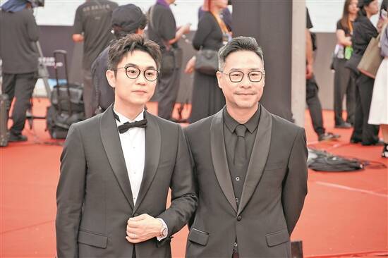 大鹏(左)与《第八个嫌疑人》导演李子俊共同亮相 羊城晚报记者 胡广欣 摄