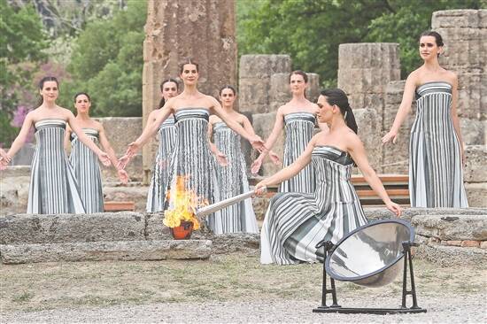 4月16日,2024年巴黎奥运会圣火火种采集仪式在希腊伯罗奔尼撒半岛的古奥林匹亚遗址举行 新华社发