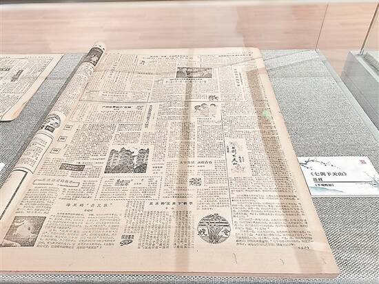 展柜中摆放着的连载有《七剑下天山》的《羊城晚报》 羊城晚报记者 黄宙辉 摄