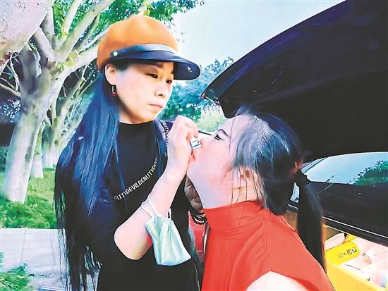 林春为殷秋华画脸