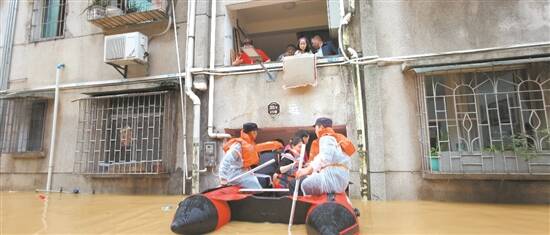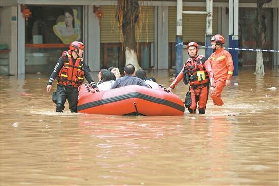 清远阳山县县城内涝严重,应急救援人员紧急转移被困群众 通讯员供图