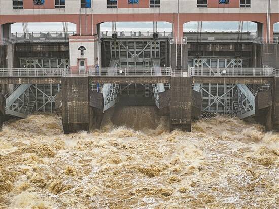 22日,清远市清城区飞来峡大坝水闸打开泄洪 羊城晚报记者 蔡嘉鸿 摄