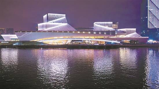 羊城晚报讯 记者朱绍杰报道:4月21日晚,白鹅潭大湾区艺术中心全面亮灯。