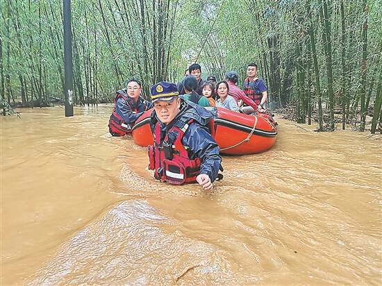 道路被洪水淹没,水位高达两米以上,路况异常艰险,救援队伍面临着巨大的挑战。“水势还在上涨,我们只能通过冲锋舟和橡皮艇到达现场。”唐文华说。而当穿越竹林地带时,橡皮艇存在被树枝划破的风险,更增加了救援的难度和危险性。