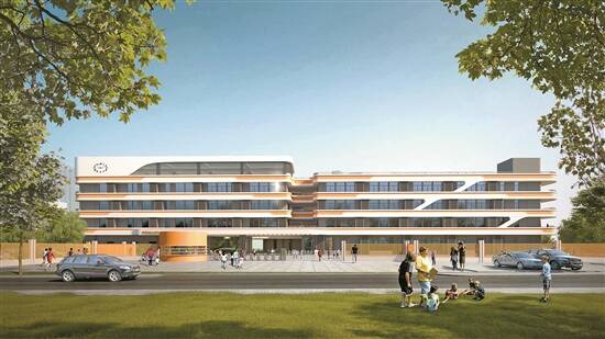 三栋四层高的教学楼宛如一艘巨轮即将扬帆起航,以橙、绿、蓝三种颜色为设计基调的校园充满活力,标准足球场、篮球场、排球场上孩子们在奔跑、嬉戏,外语文化园、国学园响起他们稚嫩的诵读声,校园里随处可见精美的书法、国画原作……广东外语外贸大学新塘实验小学(以下简称“广外新塘实验小学”)副校长吴琪说,我们学校希望孩子们在学校的每个时刻、每个角落都能感受到诗意与美,帮助他们绘制好人生的底色。