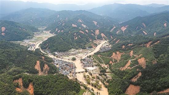 22日,江湾镇周围山体在暴雨后出现多处滑坡