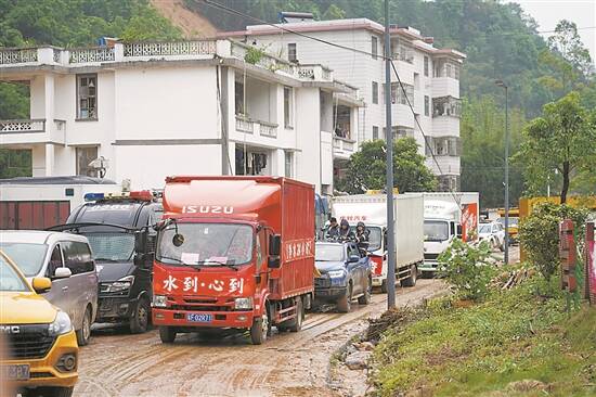 22日,饮用水、食物等物资源源不断地被运送进江湾镇