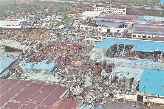 27日下午,广州白云区钟落潭一家具厂厂房被龙卷风吹翻 羊城晚报记者 钟振彬 摄