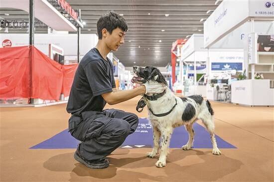 从早上到傍晚,警犬一直工作到广交会展馆关门才“下班”。其实,不少警犬曾多次参与广交会安保,习惯了早出晚归的节奏。早在2000年前后就与广交会“结缘”,一路从流花路展馆守护到琶洲展馆。