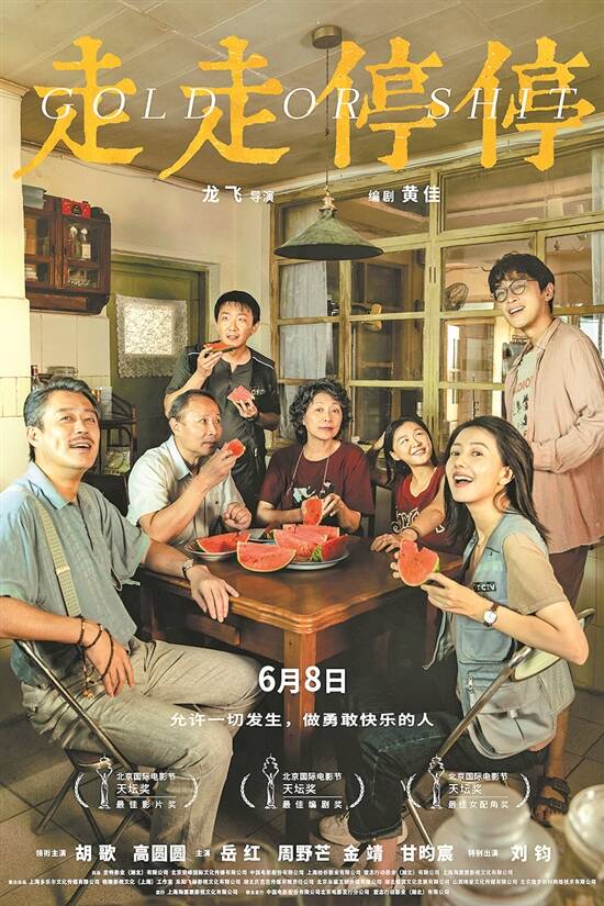 胡歌与高圆圆首次大银幕合作的《走走停停》讲述“脆皮青年”吴迪在大城市事业受挫,返回家乡重启人生,却机缘巧合与昔日“班花”冯柳柳重逢的故事。影片尝试向观众们呈现另外一种面对人生“停滞期”的心态与选择,即定档海报上的那句“允许一切发生,做勇敢快乐的人”。