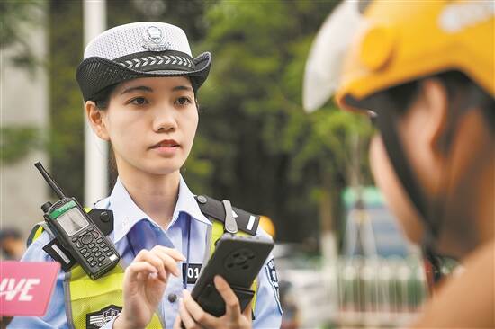 羊城晚报讯 记者高焓、蔡嘉鸿、郭思琦,通讯员交宣摄影报道:“您好,电动自行车后座不能搭载成年人。因为您违反了相关规定,我们将依法对您处罚。”4月29日上午,数名交警在广州市荔湾区中山八立交执勤。交警确认车主为首次违章,对违规车主进行普法,并依法予以警告处罚。
