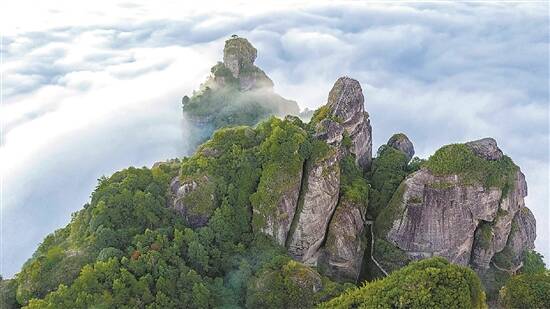 千岩竞秀,万壑争流,峰峰有异态,处处呈奇观。它的巍峨磅礴之势,早已被记在诗人笔下。唐代诗人曹松所作《霍山》这样写道,“七千七百七十丈,丈丈藤萝势入天”;宋代诗人苏东坡则是用“霍山佳气绕葱茏,势压循州第一峰”来形容。