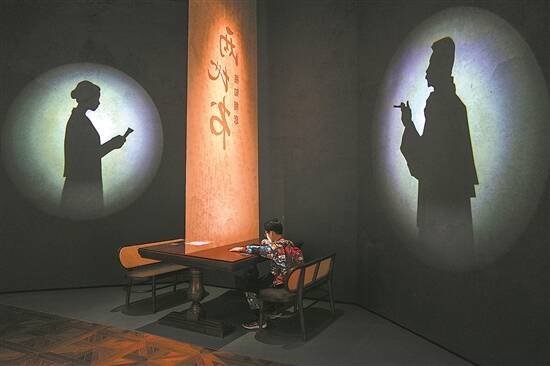 在广东文学馆的鲁迅家展览厅,一名小朋友体验多媒体互动装置