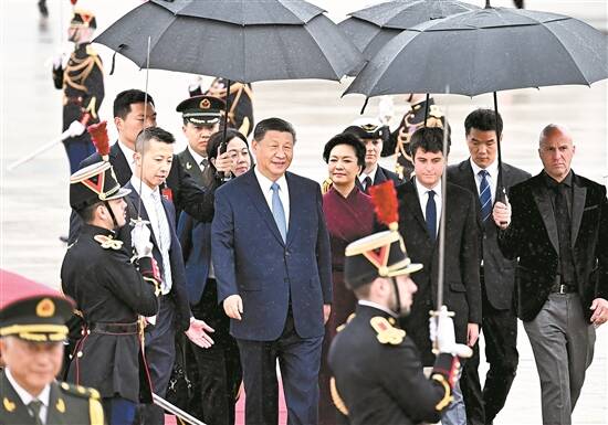 习近平主席夫人彭丽媛,中共中央政治局常委、中央办公厅主任蔡奇,中共中央政治局委员、外交部部长王毅等陪同人员同机抵达。