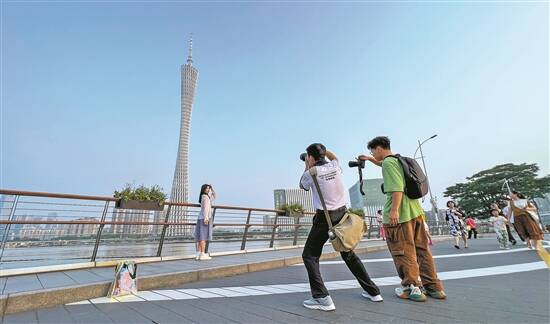 昨日,市民游客打卡“广州蓝”