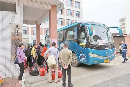 羊城晚报讯 记者欧阳志强,通讯员陈励、郑文彬摄影报道:5月7日上午9时37分,一台载满群众的大巴从韶关武江区应急安置点缓缓驶出。因洪涝灾害被转移到应急安置点的江湾镇梁屋村、湖洋村村民,踏上了回家路。