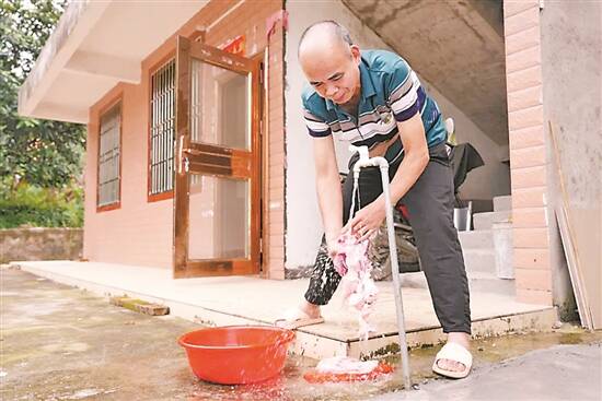 村民张赞根回家后便开始备菜做午饭