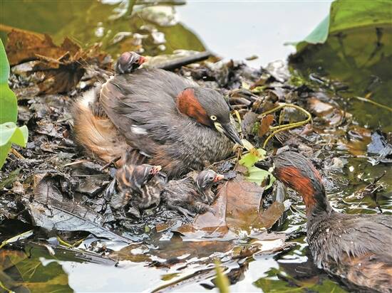 “小䴙䴘是一种常见的小水鸟,吃小鱼、虾、昆虫等,在广州各大公园池塘都能见到,但如此近距离筑巢孵蛋还是难得一见。”早上7时就来此拍摄的一位女士说,“大家拍照时要安静些,不要打扰到它们,希望它们全部成功孵化。我明天还来拍,要全程记录这家子的温馨时刻。”