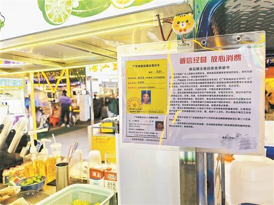 如今,实施“亮牌”承诺制后,夜市摊位摊主均自觉在摊位上“亮牌”,“亮牌”的信息包括《食品摊主登记卡》,详细记录经营者姓名、联系电话、经营品种等信息;《食品从业人员健康证》写明经营者体检单位、体检日期、身份证号码等内容;《食品安全承诺书》则是经营者对规范经营、食品安全等七方面内容作出郑重承诺。