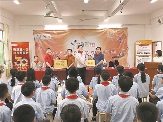 当天,捐赠仪式在同学们的期待中拉开帷幕。少先队员代表们为嘉宾一一佩戴上鲜艳的红领巾。蓝塘中心小学党委书记鼓励同学们要努力学习,用实际行动回报社会,为祖国的未来贡献自己的力量。随后,嘉宾们将捐赠的器材交到同学们手上,传递关爱与期望。