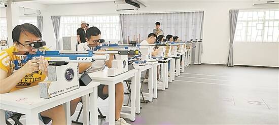 体验射击运动的新闻工作者们 羊城晚报记者 詹锡伟 摄