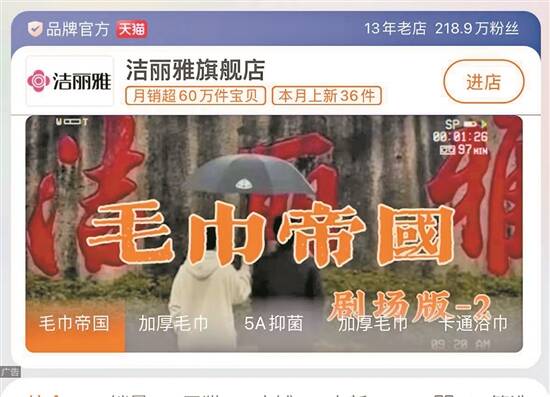 洁丽雅天猫官方旗舰店主页《毛巾帝国》的宣传图