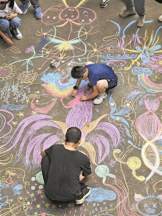 4月,一个阳光熹微、万籁俱寂的午后,广州番禺一间独栋民宅里却热闹非凡。这里有一场特别的聚会,几位青年、小孩用彩色粉笔在前院水泥地面上自由绘画。随后,他们在轻巧活泼的音乐声中,恣意舞动。