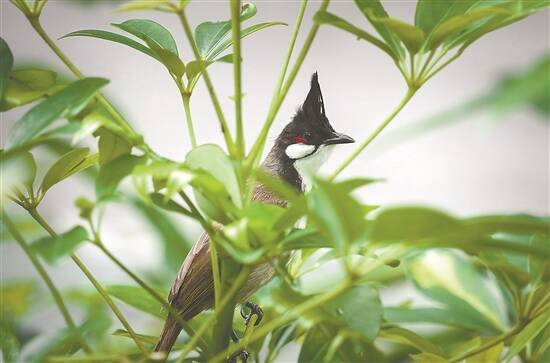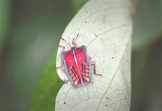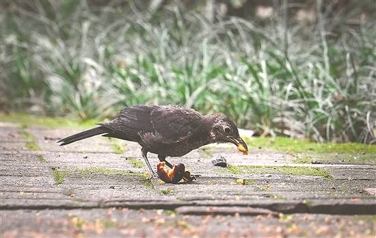 风吹过树梢后有果实落地,胆大的乌鸫直接从树木丛中走出,在时不时就有行人经过的道路上品尝这美食。红耳鹎在低矮的灌木丛中来回腾挪跳跃,时不时传来一两声鸣叫,小心翼翼的荔枝蝽的若虫感受到周围动静后,悄悄跑到叶子的背面,之后又不知去向了哪里。
