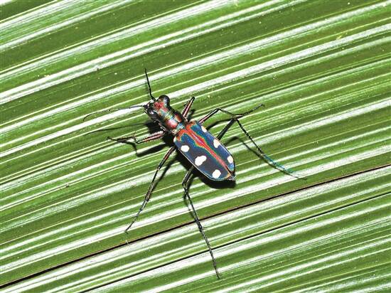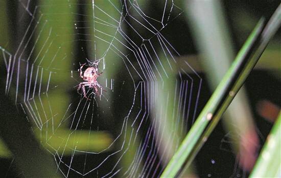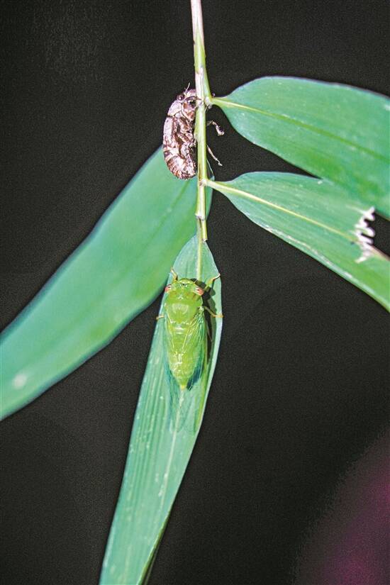 树影婆娑,花韵袭人。盆架子树的种子被风送到园区各处,落满绿青苔。月色斑驳,映衬得植物颜色深浅不一,让变色树蜥开始纠结。一根青翠绿枝上有一对羽翼,那是薄翅蝉趁着夜色悄悄蜕皮羽化,幼虫的背部慢慢裂开一条缝隙,约半小时过后,绿色的成虫会从这道缝隙中缓缓出来,羽化后的薄翅蝉翅膀较为柔软,此时它会守在自己脱去的壳旁,等待翅膀变得坚硬。等到夜色退去,薄翅蝉便会悄然离开现场,只剩“金蝉脱壳”后,蝉壳留在树干。