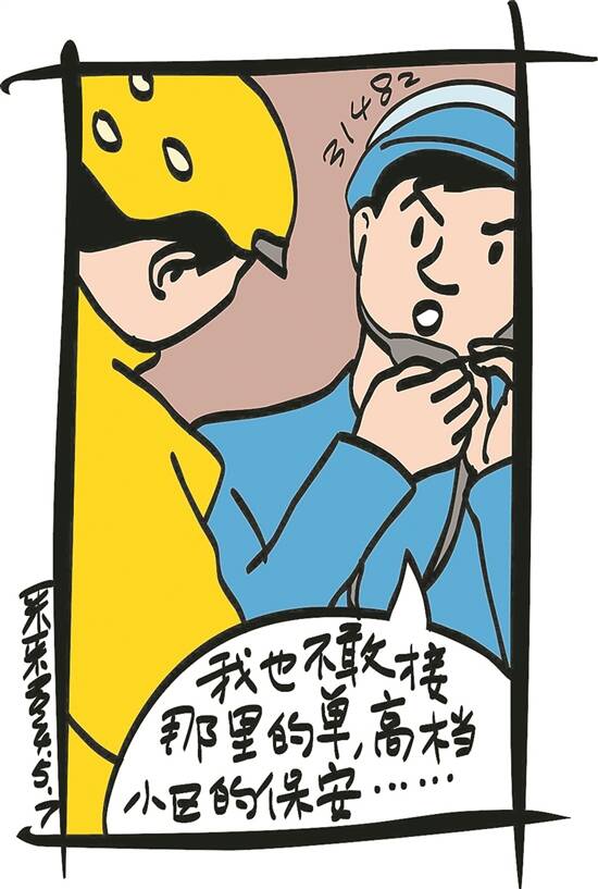 黄头盔笑一笑,扭头问老板,单子还有多长时间好。老板回答还有两分钟。黄头盔转过来继续对蓝头盔说:“白天有个水岸尚品小区的单子,我直接拒绝了。”蓝头盔说:“我也不敢接那里的单,高档小区的保安很难缠,见到外卖骑手像赶苍蝇一样,真是狗眼看人低。”“哎!”黄头盔又叹了一口气,“真不知道人家是怎么送进去的,难道送个外卖还要走关系?”