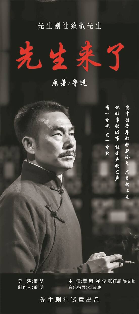 在人格、精神、思想等方面,我对鲁迅先生十分景仰。去年,我和鲁迅长孙周令飞先生见面的时候,他说,用了20多年的时间想做一部反映鲁迅波澜壮阔一生的舞台剧,但因为种种原因一直没有实现。作为一名戏剧工作者,我非常想填补这样一个空白,因此就排演了《先生来了》这个话剧,它可能未必完美,但也是我努力作答的“参考答案”,算是对弘扬鲁迅精神、推广鲁迅文化的一点贡献。