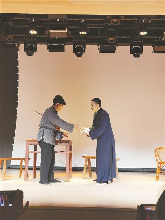董明:对我来说,目前最重要的事是继续排演好《先生来了》,从北京东单的大华剧场到广州的白鹅潭大湾区艺术中心文学馆小剧场,演出得到了两地观众的认同和喜爱,我希望它还能够走到绍兴去,到上海去,每一场演出都会往前再跨一小步,哪怕只是一小步,然后把这个戏推向全国。