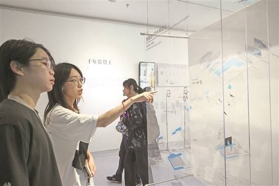 来到“看见海丝路——重拾文化遗产”展览现场,记者见到了“00后”本科毕业生杨羽楠,她是作品《负距离——南越国木构水闸遗址》的主创者之一。展览开幕以来,杨羽楠基本每天都会到现场为观众义务讲解。