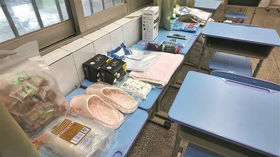 培正考点设暖心教室,备有校服、拖鞋、红糖等应急物品