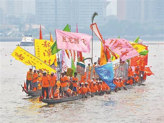 “扒龙船”是海珠区龙潭村每年的大事。回忆起龙潭村龙舟历史,何礼谦说,该村世代流传着这样的童谣:“又有龙船又有戏,仲有蚬汤浸饭糜”,意在指该村河涌鱼虾成群与水岸边村民同乐的热闹场景。