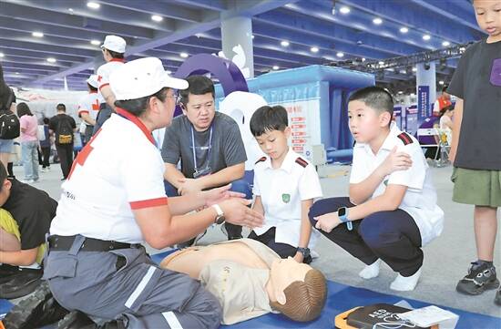 另一边,心肺复苏和地震斜楼体验屋的互动项目吸引了不少家长、孩子的目光。“心肺复苏时,要留意手臂垂直于胸部按压区哦。”在工作人员手把手的教学中,孩子们纷纷在模型上有模有样地体验起来。来自朝天小学四年级的学生伍茂彤是参与体验的一员。“这是我第一次参观应急安全类展览,太有趣了!”伍茂彤兴奋地说。在地震斜楼体验屋中,他感受到了地震带来的灾害,并学习了逃生技能;在心肺复苏体验中,他更是将之前仅仅是“耳闻”的急救技巧变成了实操。带着一家人前来参加活动的市民黄先生同样表示,此次活动有趣又有“料”,一家人在欢声笑语中收获满满。