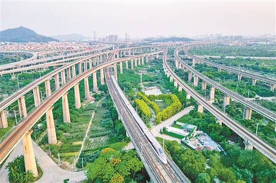2023年年底,京广高铁联络线接入广州白云站,拉开广州“高铁进中心城区”的序幕。粤港澳大湾区内高铁、普铁、城际得到有效融合衔接,形成了“轴带支撑、极轴放射”的多层次铁路网络,推动“轨道上的大湾区”加速驶来。